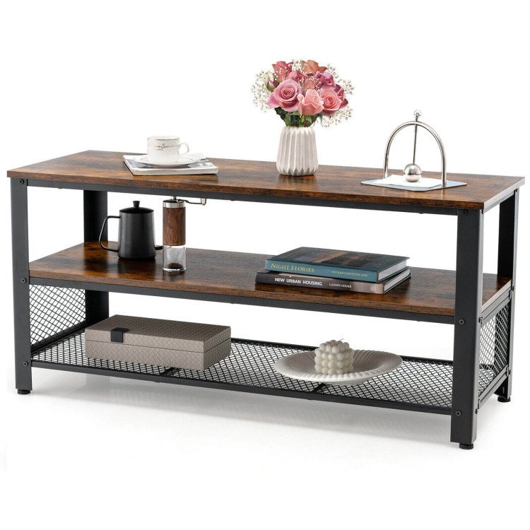 3.Versatile Shelving Unit: In addition to the spacious tabletop, the versatile TV console table also consists of an open middle shelf and an open mesh shelf, which provide generous and accessible storage space for multi-media equipment and other sundries. Therefore, the shelving unit can be used as a TV console, a storage rack, or a shoe rack.