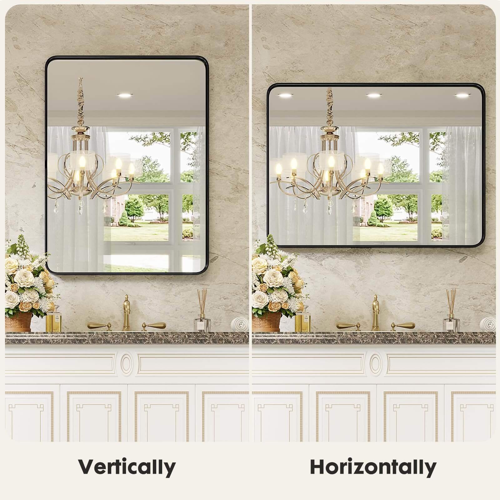 With a round corner rectangular metal frame, the matte black mirror looks elegant and generous. The anodizing process makes the metal frame waterproof and rustproof, durable and non-deformation, and with delicate brushed texture, making the rectangle mirror look more textured.