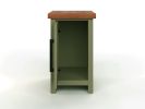 The Vineyard 14 inch Chairside Table delivers a flawless combination of modern farmhouse style and country simplicity. Beautifully crafted from Poplar Solids, Okoume Veneers and Knotty Alder, this accent table features a two-tone Sage Green and Fruitwood finish and oil-rubbed Bronze hardware. Placed next to your favorite chair or bedside, this side table is ideal to showcase a table lamp up top and store essentials behind one door below. Fully assembled upon arrival, this piece from Bridgevine Home is ready to unbox and enjoy.