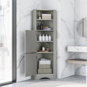 Tall Bathroom Corner Cabinet, Freestanding Storage Cabinet with Doors and Adjustable Shelves, MDF Board, Gray