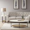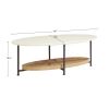 Modernize your living room decor with the Madison Park Beaumont Coffee Table. Flaunting an eye-catching design, this oval coffee table features a white table top with black metal legs that create a bold contemporary look. A lower natural shelf provides space to display and store your magazines and other essentials. Assembly is required and tools are not provided.