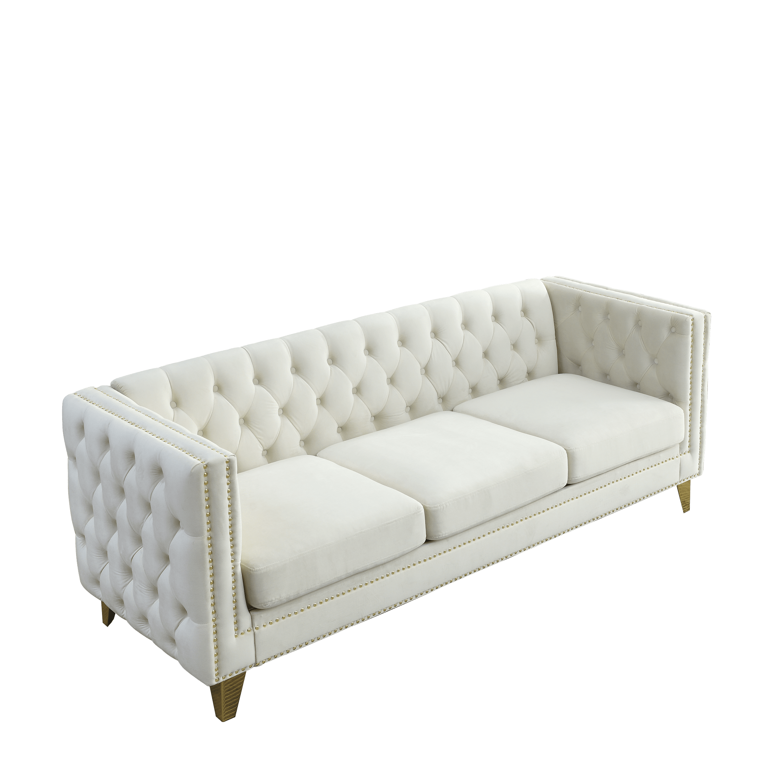 {Contact us for 3D modeling} Velvet Sofa for Living Room,Buttons Tufted Square Arm Couch, Modern Couch Upholstered Button and Metal Legs