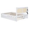 Elevate your bedroom decor and enhance your sleeping experience with our exquisite Wooden Bed Frame featuring a beautifully woven Rattan Headboard. Crafted with both style and functionality in mind, this bed frame is designed to provide you with the utmost comfort and convenience. With integrated features such as a pull-out bed and two spacious drawers, along with USB and power outlets conveniently located on the headboard, this bed frame offers a seamless blend of modern technology and timeless elegance. Plus, the addition of ambient LED lighting, controlled by a remote, creates the perfect atmosphere for relaxation and tranquility.
