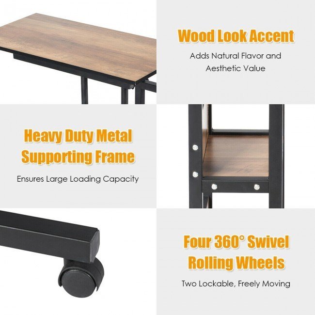Tackle the Clutter In Small Apartment: Equipped with well-aligned storage shelves, this side table provides ample space for keeping all your essentials in order, such as books, magazines, remote controls, etc. And the four 360° swivel rolling wheels allow you to slide the table anywhere you want.