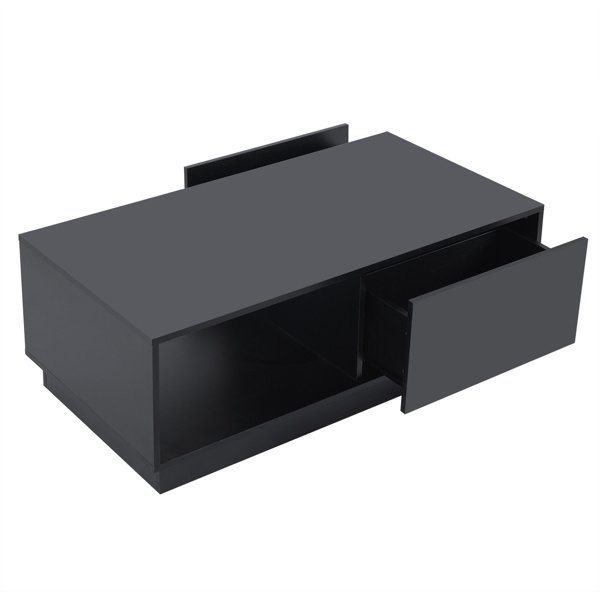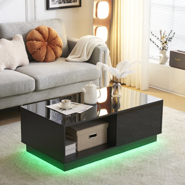 Home > Modern LED Coffee Table with 2 Drawers and 16 Colors LED Lights, High Glossy Rectangle Coffee End Table for Living Room, Black