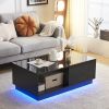 Modern LED Coffee Table with 2 Drawers and 16 Colors LED Lights, High Glossy Rectangle Coffee End Table for Living Room, Black