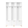Versatile 3-in-1This exquisite hall tree harmoniously combines coat racks, shoe storage compartments, and numerous storage cubbies, providing a comprehensive organization system for your entryway. Through this versatile cabinet, you can cater to different storage requirements without needing to acquire other storage furniture.