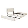 With the design of LED headboard, this bed brings classic atmosphere to your home. The design can make you feel easy and comfortable. This bed provides a fun and adorable place for you. This upholstered platform bed is designed to last for a lifetime as well as maintain its stylish look with clean lines that blend well with the surroundings. This Upholstered bed with trundle under bed is perfect for ones who love sleepovers. Such a versatile piece, bringing functionality, versatility, and style to your home, perfect space saving functionality. 2 big drawers helps to keep the room clean. Use the remote control and mobile APP to control the LED lights, which not only can create a romantic atmosphere for your bedroom, but also can be used as a night light. USB Ports on the headboard can be used to charge Ipad or laptop.
