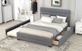 Queen Upholstered Platform Bed with Twin Size Trundle and Two Drawers,Grey