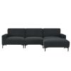 This cozy sofa is designed for relaxation. At first glance, the corner sofa looks simple, but the small details make it an eye catcher in any room.Thick cushions and lounge seating are the perfect combination.Black metal legs make this sofa a modern addition to your living room.The high resilience foam used in the seat and back cushions adds to the comfort of this sofa, which is available in a variety of colors.