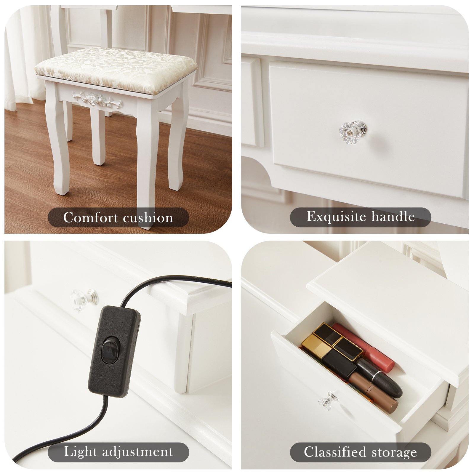 Home > White Vanity Desk with Lights,Makeup Vanity with Lights,Vintage Vanity Dresser with Lights,Dressing Table,Vanity Set with Mirror and Stool